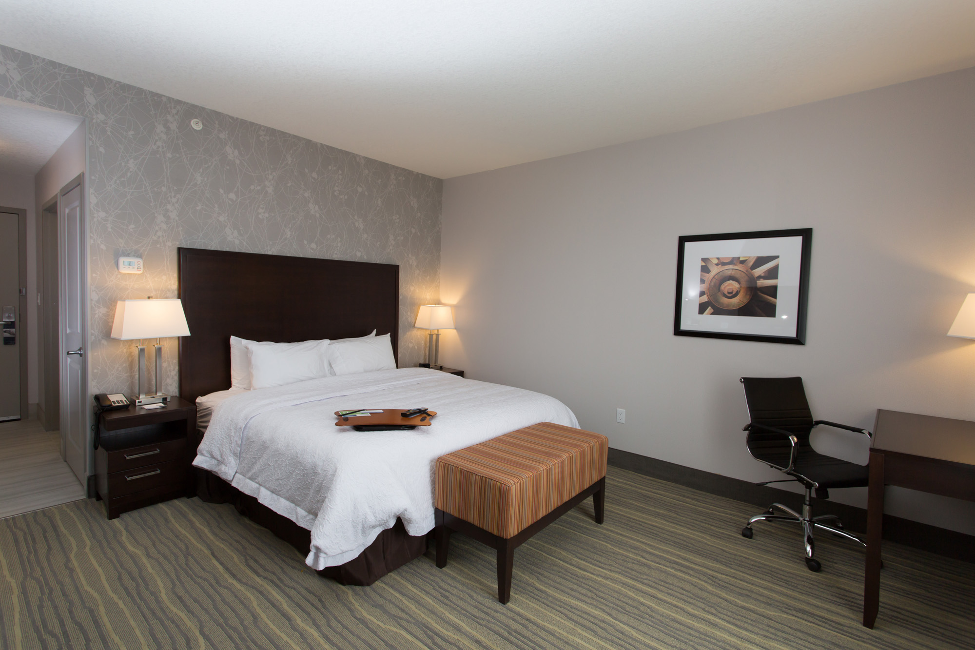 Unwind in a bright and modern guest room at this Lloydminster hotel, equipped with homelike amenities including free WiFi, a refrigerator, a microwave, and a large, well-lit work space. Relax on the clean and fresh Hampton bed® and watch the flat-screen TV. Upgrade to a comfortable suite for more space and a whirlpool tub. The 24-hour Suite Shop stocks a variety of snacks, drinks and any travel essentials you might have forgotten. Join us each morning for Hampton’s free hot buffet breakfast, featuring our famous, fresh-baked waffles, or if you’re in a rush, grab a free Hampton’s On the Run Breakfast Bag™, Monday - Friday.